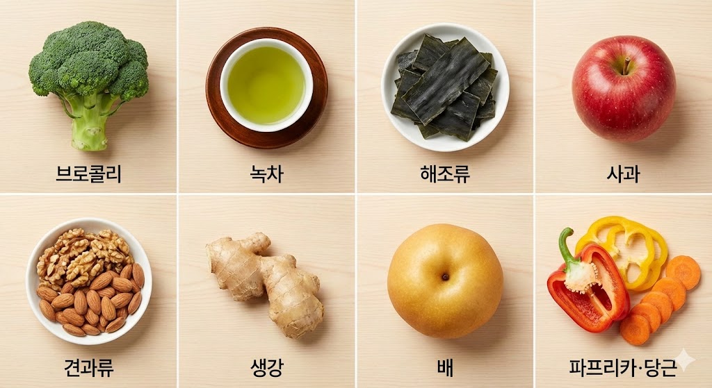미세먼지에 좋은 음식 8가지는 해독·항염·항산화 작용을 통해 폐와 면역 체계를 보호합니다. 브로콜리부터 녹차, 사과, 견과류까지 일상에서 쉽게 선택할 수 있는 식품들이므로 꾸준히 섭취한다면 호흡기 건강 관리가 한층 더 수월해질 것입니다.