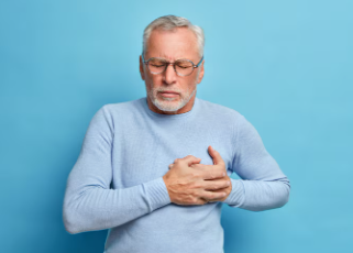 - 가장 대표적인 심근경색 초기증상으로, 무겁게 짓누르거나 쥐어짜는 듯한 통증이 발생합니다.