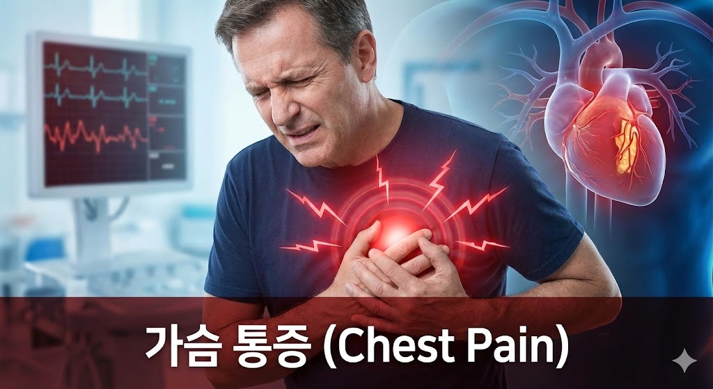 가슴 압박감, 호흡곤란, 식은땀, 턱·등·왼팔로 퍼지는 통증 등이 대표적입니다.