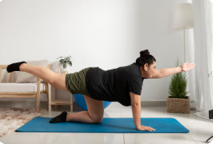 - 오른팔과 왼다리를 동시에 들어올려 일직선이 되도록 합니다.