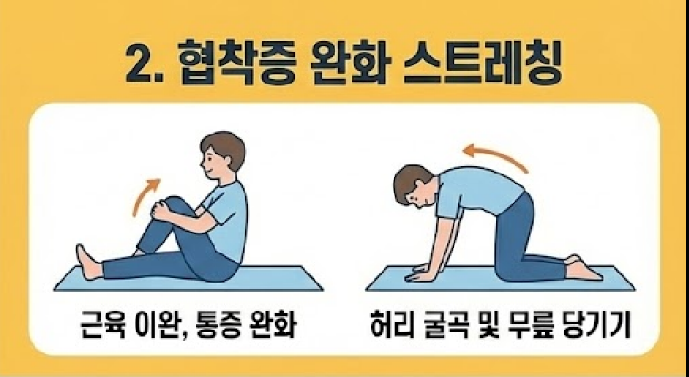 - 허리를 젖히는 동작은 협착증을 악화할 수 있으므로 피하세요.
